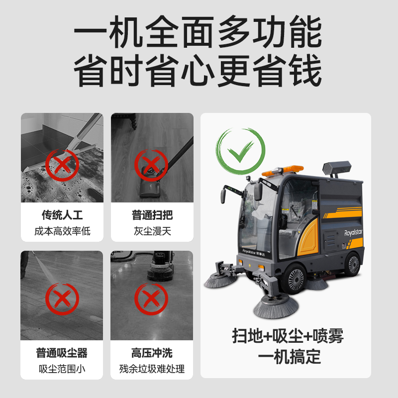 四輪清掃車240L掛桶清潔,1小時高效清掃25000㎡,磚頭可清掃,強勁4邊刷+4主刷系統,8700W大功率動力,掃...